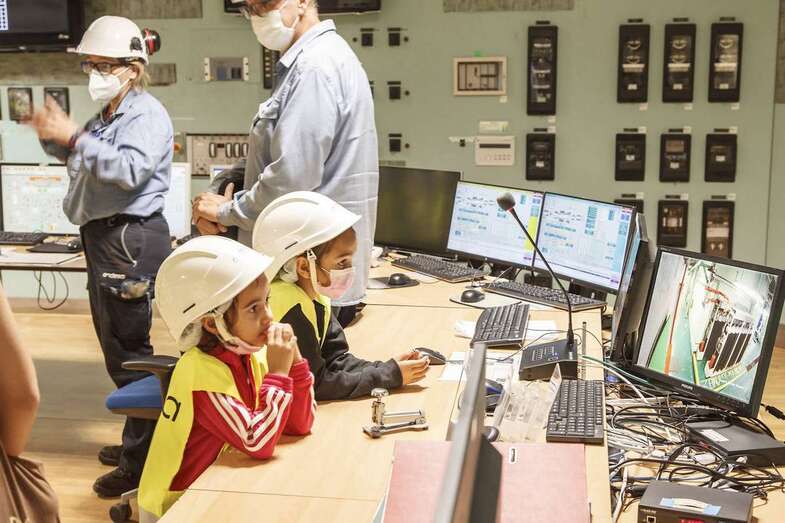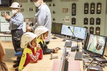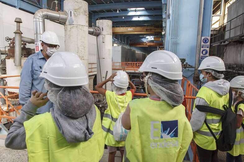 En su visita también aprendieron conceptos como descarbonización, donde Endesa tienen centrados todos sus esfuerzos para lograr que en un futuro cercano toda la energía generada sea libre y respetuosa con el medioambiente. En ese sentido, José Carlos les apuntó hacia una chimenea enorme de casi 77 metros de altura por donde hace unos años se desechaba la combustión de vapor y que, en breve, será demolida. “Será el primer gran guiño de la compañía a la descarbonización en Canarias”.