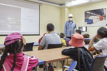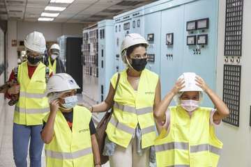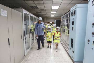 Estela, una joven técnica de 25 años, encargada del mantenimiento de la maquinaria en Jinámar, les enseñó el concepto de la igualdad entre sexos a nivel laboral y que las mujeres se han ido incorporando con gran éxito a los trabajos técnicos de las centrales térmicas de Canarias. Seguro que su ejemplo cundirá entre las numerosas niñas que formaban parte del grupo escolar de visita y que dentro de unos años tendremos una o varias ingenieras entre ellas.