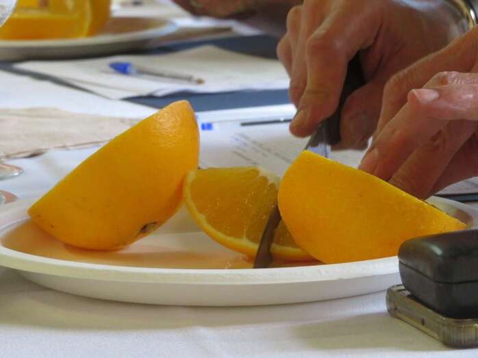 Los responsables de catar los cítricos realizaron una primera fase visual en la que valoraron la forma de la naranja y el color de su cáscara y su pulpa, y el grosor de la cáscara. Posteriormente analizaron su intensidad aromática y, finalmente, su acidez, nivel de azúcar y jugosidad.
