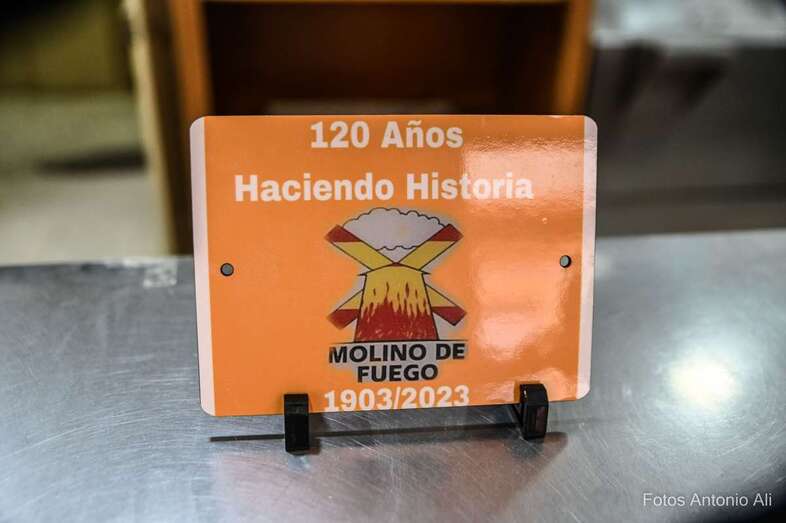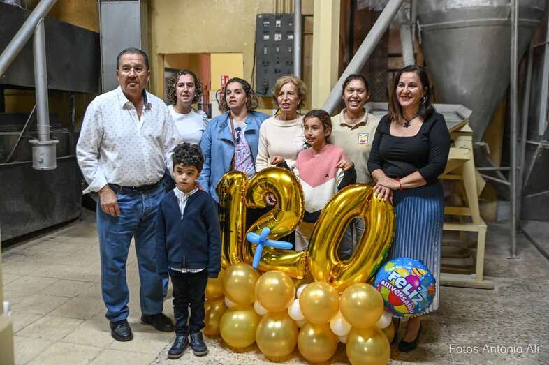 El histórico Molino de Fuego celebró este martes su 120 aniversario. El legendario negocio de fabricación de gofio de la calle de María Encarnación Navarro echó a andar en enero 1903 y desde entonces mantiene intacta su actividad.