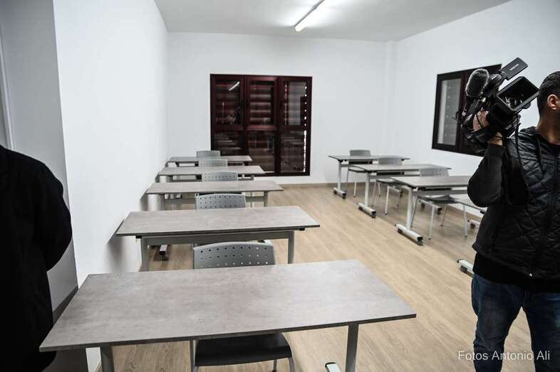 Cuenta con unas 150 mesas que están repartidas en las diferentes aulas con las que cuenta el centro, que dispone de suelo de parquet, ascensor y aseos en sus tres plantas. Y que próximamente se beneficiará de otra inversión del Cabildo –en esta ocasión de unos 175.000 euros– para la compra de material.