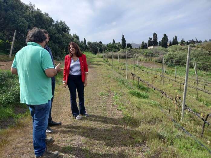 La alcaldesa de Telde, Carmen Hernández, visitó recientemente la Bodega Higuera Mayor en El Palmital y alabó la apuesta de Luis López por recuperar hace dos décadas la tradición vinícola que tenía esta finca, de alrededor de ocho hectáreas y que adquirió su abuelo en los años cuarenta del pasado siglo, donde además de viñas también cultiva naranjas y otras frutas.