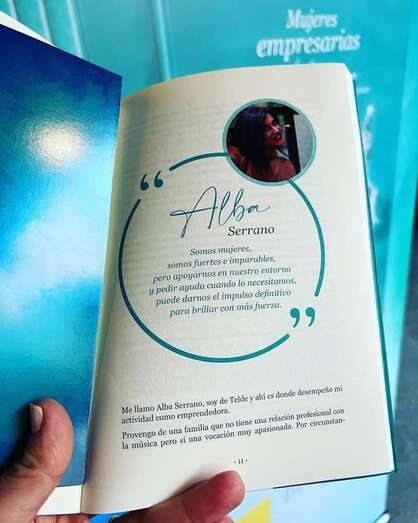 El acto finalizó con otra teldense, la cantante Alba Serrano, que interpretó varias piezas musicales. Ella protagoniza varias páginas del libro, en el que explica su experiencia emprendedora en su proyecto de escuela CantArte.