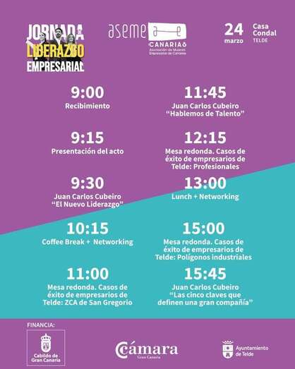 El municipio de Telde acoge este viernes la Jornada de Liderazgo Empresarial impulsada por la Asociación de Mujeres Empresarias de Canarias (Aseme) con la colaboración del Ayuntamiento, el Cabildo de Gran Canaria y la Cámara de Comercio.