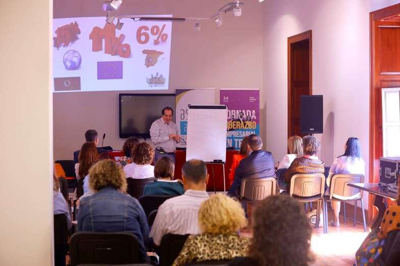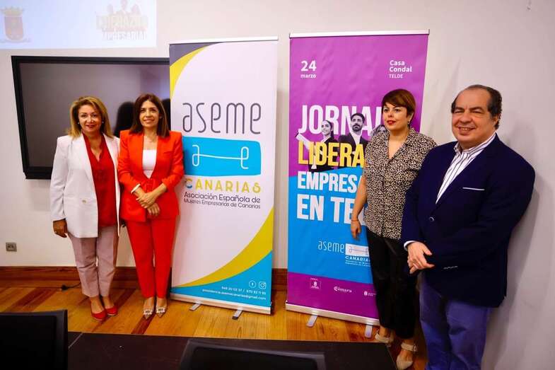La alcaldesa de Telde, Carmen Hernández, la consejera de Industria, Comercio y Artesanía del Cabildo grancanario, Minerva Alonso, la presidenta de Aseme, Lidia Monzón, y el propio Cubeiro inauguraron este encuentro en el que participaron varias decenas de empresarios y empresarias del municipio.