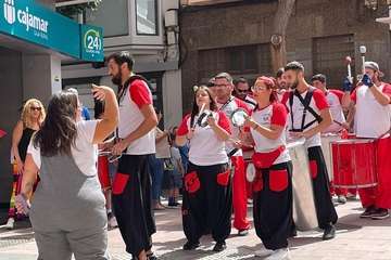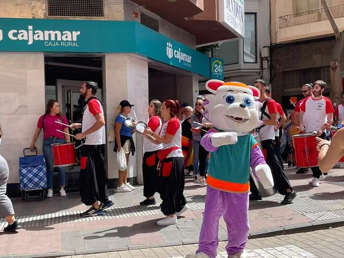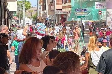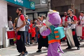 Al mediodía, un pasacalle amenizada por una batucada y acompañada por muñecos gigantes hizo las delicias de los más pequeños.