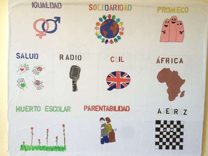 El boletín que mensualmente edita el instituto reflejó buena parte de estos trabajos. Así, en la Radio Escolar alumnos de varios grupos y del Aula Enclave emitieron en directo un programa lleno de entrevistas y noticias interesantes. En el taller del Proyecto de Solidaridad se visionaron varios vídeos y se realizó un puzzle gigante y juegos en los que los alumnos reflexionaron sobre la importancia de ser solidarios y se les propuso que pensaran qué podrían hacer para ayudar a los demás.