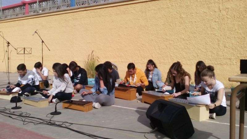 El acto comenzaba con la actuación de alumnos de 2º de la ESO que interpretaban un fragmento de la Oda a la alegría, de la novena sinfonía de Beethoven, música que actualmente es el himno oficial de la Unión Europea y que expresa la visión idealista de la fraternidad entre los seres humanos y que, en el lenguaje universal de la música, expresa los ideales de libertad, paz y solidaridad.
