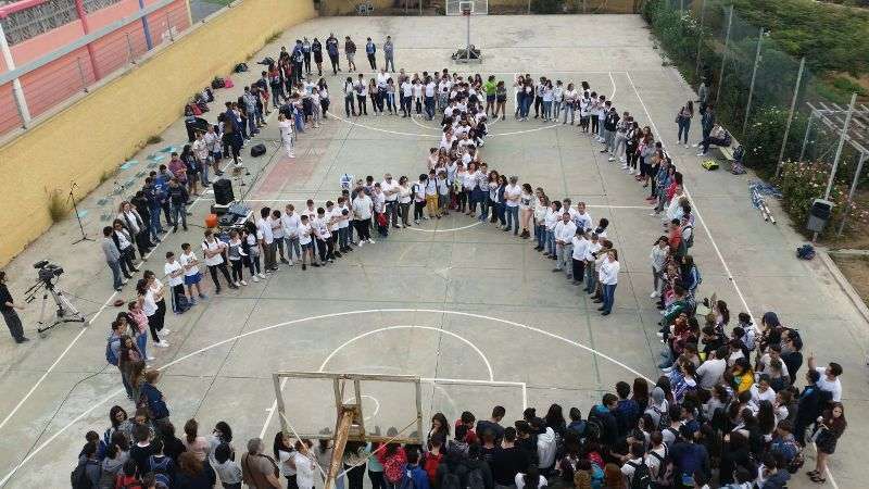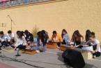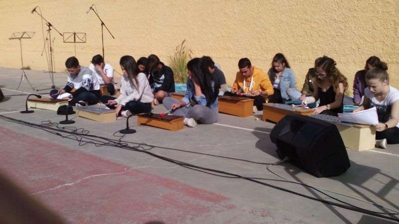 Como complemento a la lectura del manifiesto un grupo de alumnos procedió a realizar una representación de rechazo a las armas mientras vestían atuendos de distintas zonas del mundo finalizando la representación cogidos de la mano como signo de que es posible un entendimiento entre los distintos pueblos que habitan en nuestro planeta.