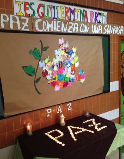 Telde.- El IES Guillermina Brito de La Parrilla celebró el pasado viernes varios actos con motivo del Día Escolar de la No Violencia y la Paz. La comunidad docente del instituto teldense se unió para conmemorar la efeméride y pedir por la paz y no violencia en el mundo a través de varias manualidades, composiciones artísticas e iniciativas simbólicas.