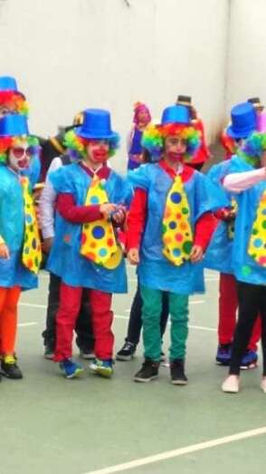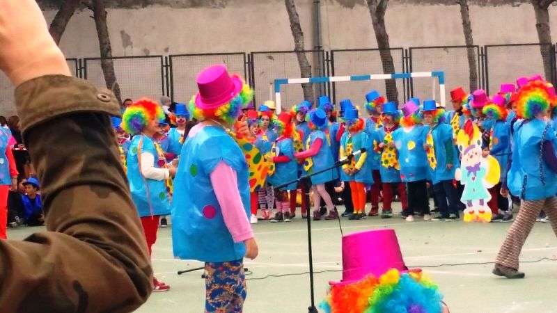 Escolares de varios ciclos participaron en una fiesta que se inició en el interior del colegio y después se trasladó a la calle al ritmo de música, baile y disfraces, en la que no faltaron las carrozas y hasta una lustrosa sardina.