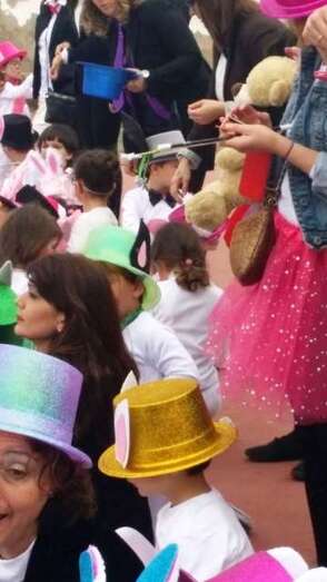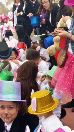 El alumnado se reunió con su tutor para formar las filas a las 11.00 horas y colocarse en el pasacalles, que discurrió por el entramado viario del entorno del colegio en un deslumbrante desfile que duró poco más de una hora.
