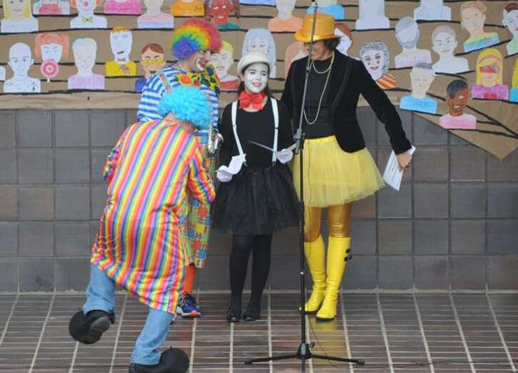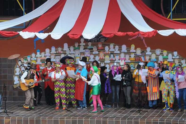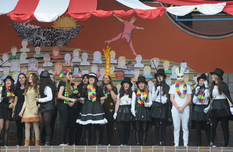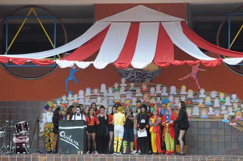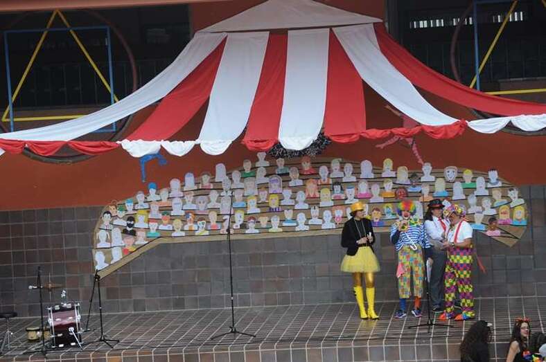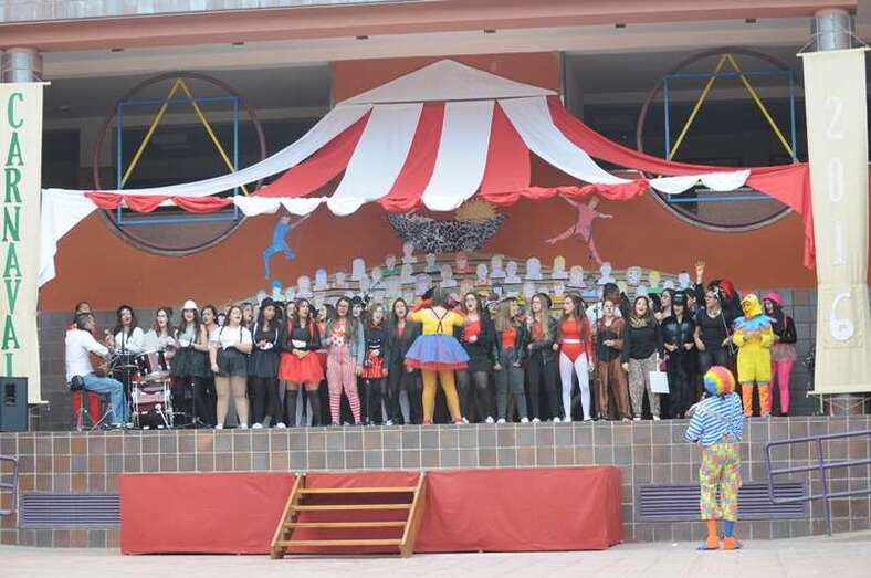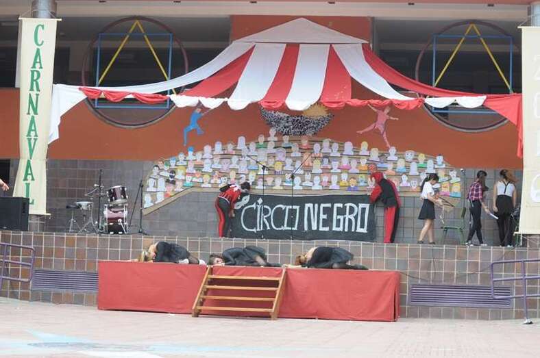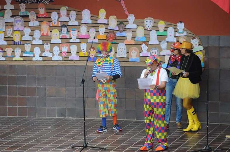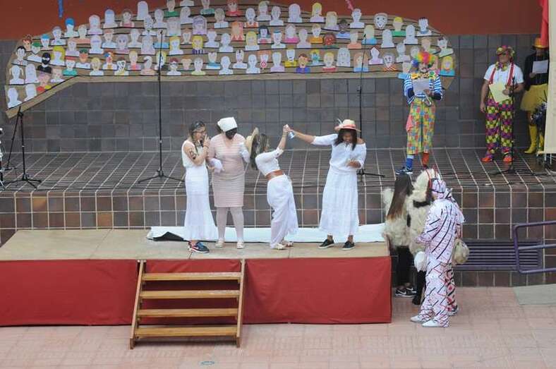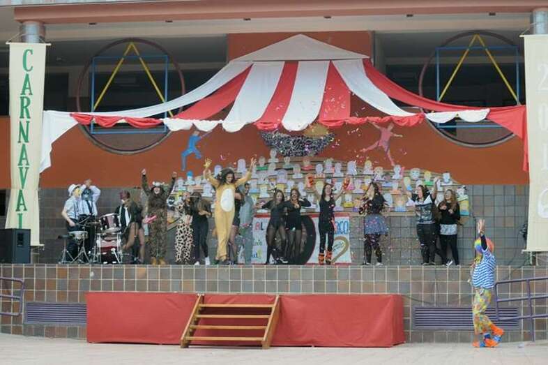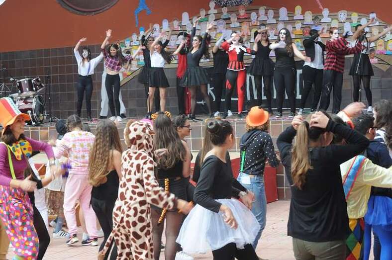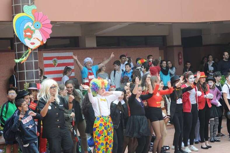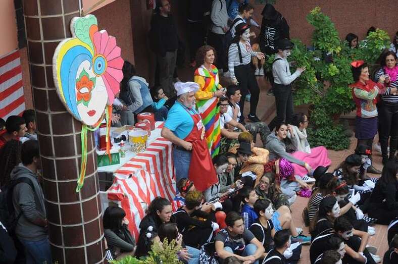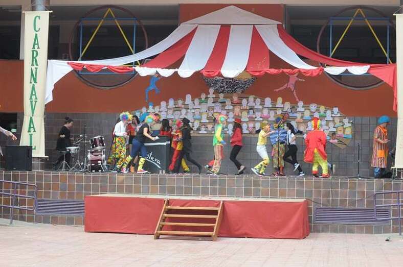 “El decorado y el ambiente festivo nos hizo trasladarnos a la carpa circense donde payasos, domadores, malabaristas, magos y un elenco de personajes nos hicieron cantar y bailar”, relatan desde el centro. Abrió el acto la batucada del instituto, que este año participó en el pregón anunciador del Carnaval Tradicional de nuestro municipio, y le siguió un recorrido por los Carnavales tradicionales de Canarias, representados por la caracterizaciones de los alumnos ( Los carneros de Frontera en el Hierro, los diabletes de Teguise en Lanzarote, Los Indianos de la Palma, Nuestras mascaritas y el Mataculebra cubano).