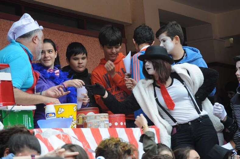 Telde.- El Instituto de Enseñanza Secundaria (IES) de El Calero celebró el pasado 26 de febrero su fiesta de Carnaval. Tortillas de carnaval y roscas en el puesto de Pop Millo ayudaron a coger fuerzas a la comunidad educativa para preparar el espectáculo que se avecinaba. El motivo de este año fue el Circo. Un precioso mural realizado por el AMPA “Nuestros hijos” presidió la entrada del Instituto.