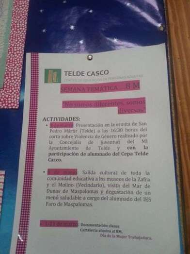 Telde.- El Centro de Educación de Personas Adultas (CEPA) Telde Casco, en coordinación con su red de Igualdad, decidió empoderar, durante la celebración del ocho de marzo, el papel de la mujer en el ámbito laboral. En esa semana temática en pro de este objetivo se destacó, a través de cartelería, trabajos en el aula, pegatinas, exposiciones y textos ad hoc su inestimable labor en el campo de la agricultura, específicamente en la zafra y en otros campos.