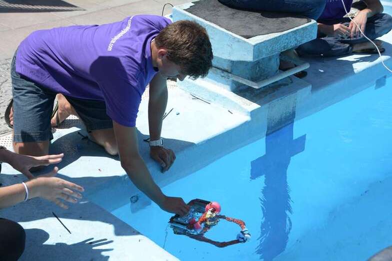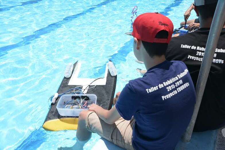 Este taller de atracción y motivación de escolares de Secundaria hacia la ingeniería mediante la construcción y operación remota de vehículos submarinos (ROVs) es una iniciativa del Gobierno de Canarias, a través de la Plataforma Oceánica de Canarias (Plocan), en colaboración con el grupo VICOROB (Computer Vision anad Robotics Group) de la Universidad de Girona, y el patronicio de la Obra Social de La Caixa. Actividad mediante la que estos alumnos y profesores construyen sus robots submarinos operados por control remoto, mostrando posteriormente los vehículos y la destreza en su manejo de los ROVs en el Encuentro de Robótica Submarina celebrado este miércoles en la piscina Julio Navarro de Las Palmas de Gran Canaria.