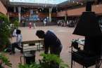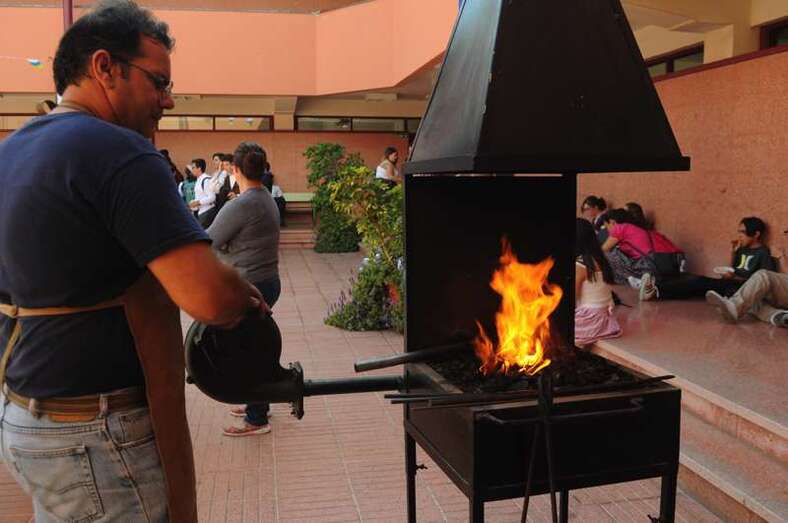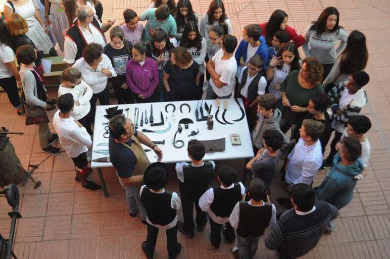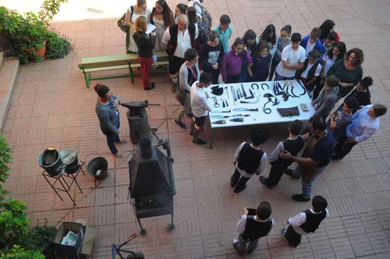 Varios artesanos visitaron ese día el instituto para compartir su oficio con el alumnado. Como Clara, caladora y vecina del barrio que acudió con una muestra de sus labores; o el herrero Santiago Medina, que enseñó a la chiquillería los secretos de un empleo casi en extinción. A golpe de martillo, con su yunque y su fragua, mostró lo que es el día a día de este oficio ancestral moldeando el metal para dar forma a todo tipo de herramientas y artilugios.