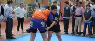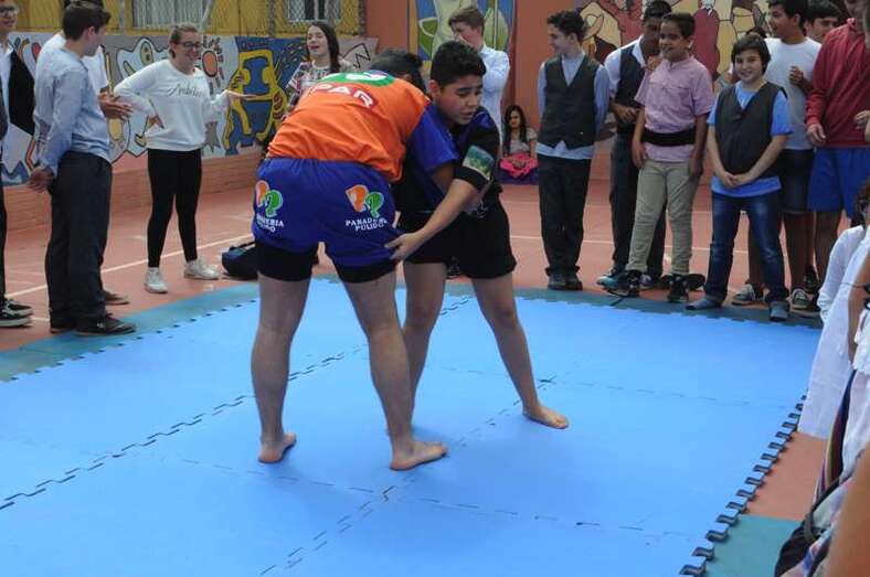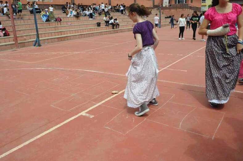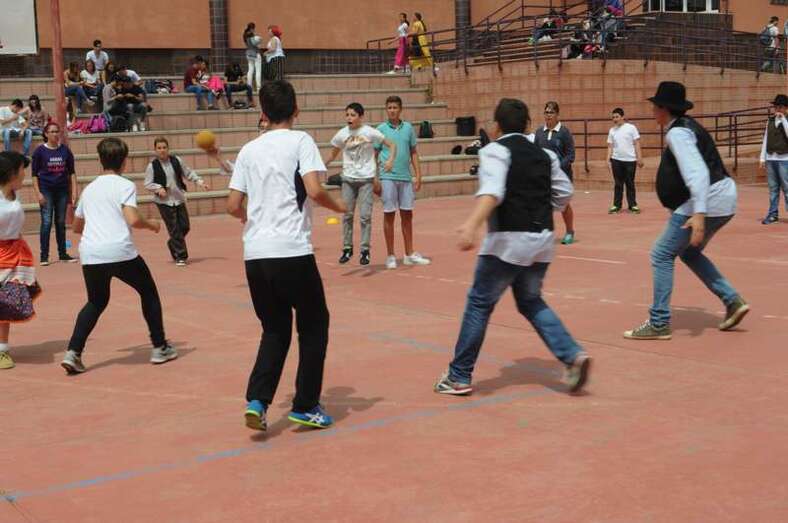 También hubo momento para la gastronomía canaria –no faltaron las papas arrugadas con mojo y hasta los bocadillos del archipopular chorizo de Teror– y para que los estudiantes disfrutaran de unos minutos de ocio practicando deportes autóctonos como la lucha o la bola canaria y otros juegos como el brillé, el teje o la soga.