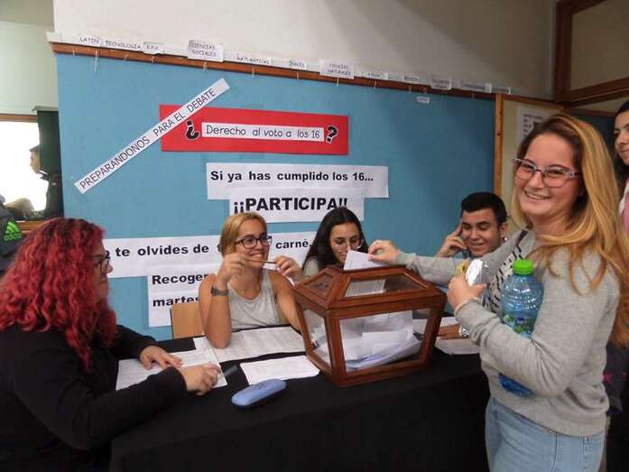 Trabajo, ilusión, espíritu de superación y valentía. Estas han sido las claves del éxito del equipo de debate del IES José Frugoni Pérez. La preparación del debate final propició que el pasado mes de mayo se organizara una encuesta entre el alumnado del centro mayor de 16 años, que mayoritariamente (71%) se manifestó partidario de rebajar la edad para votar. Además de la satisfacción personal, los componentes del grupo disfrutarán como premio un viaje a Madrid, donde, entre otras actividades, visitarán el Congreso de los Diputados.