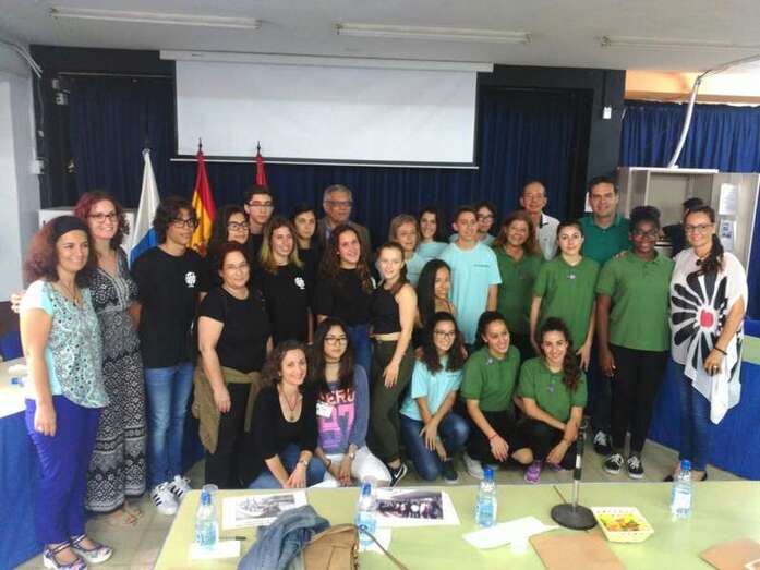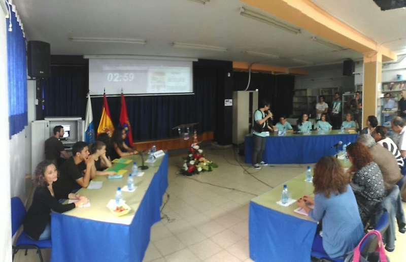 El edil del área, Diego Ojeda, presidió la entrega de premios tras la celebración de las fases semifinal y final que se desarrollaron en el IES Profesor Antonio Cabrera (Las Remudas) y en la que participaron, además del centro anfitrión, los institutos José Frugoni Pérez (La Rocha), José Arencibia Gil y Casas Nuevas. Junto a él asistieron al concurso de debates la coordinadora de la Consejería de Educación y Juventud del Cabildo de Gran Canaria, Sara Ramírez, la vicedirectora del centro y María del Mar Rodríguez.