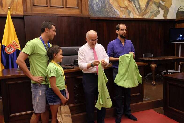El presidente del Cabildo, Antonio Morales, y el consejero de Educación y Juventud, Miguel Montero, recibieron este martes en la Casa Palacio a los 65 participantes de este campamento urbano, como parte una de las visitas programadas que desarrollarán estos jóvenes, quienes llenaron con su colorido y algarabía el Salón de Plenos y realizaron cuantas preguntas quisieron.