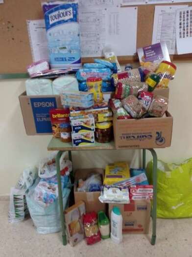 La primera de las actividades consistió en recoger alimentos y productos de aseo para los refugiados sirios en Grecia, colaborando con la ONG Agrupación Solidaria Canarias SOS Refugiados.