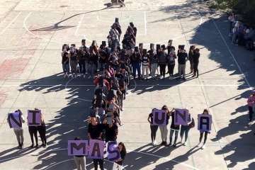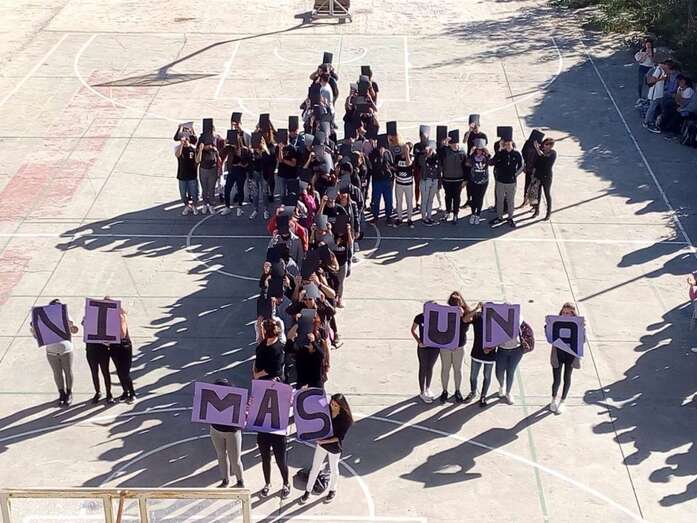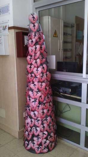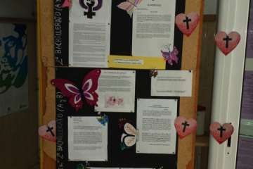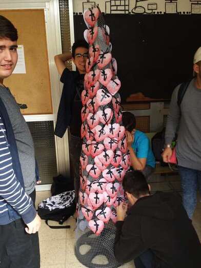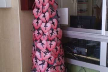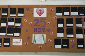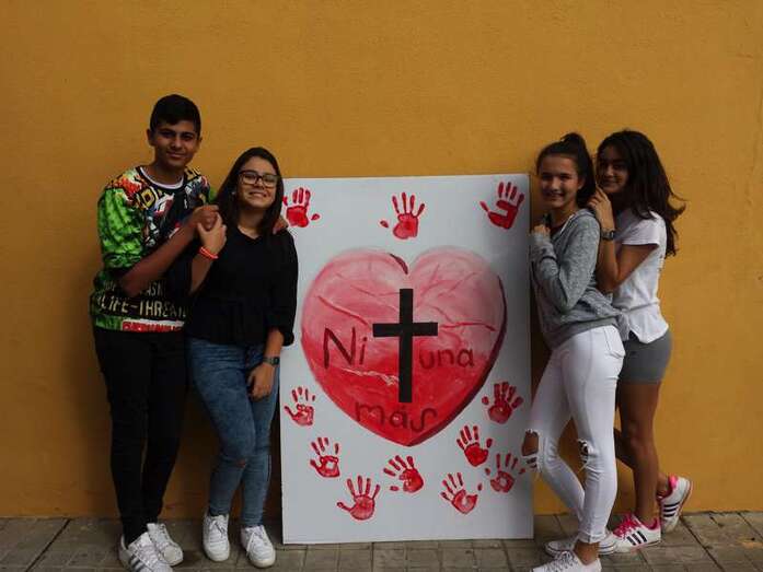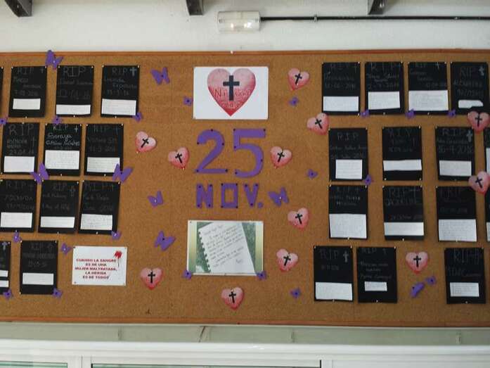 Por otro lado, la comunidad educativa confeccionaba un árbol con corazones y crucifijos en el que podía leerse el lema Ni una más, elegido por el centro para la conmemoración del 25 de noviembre.