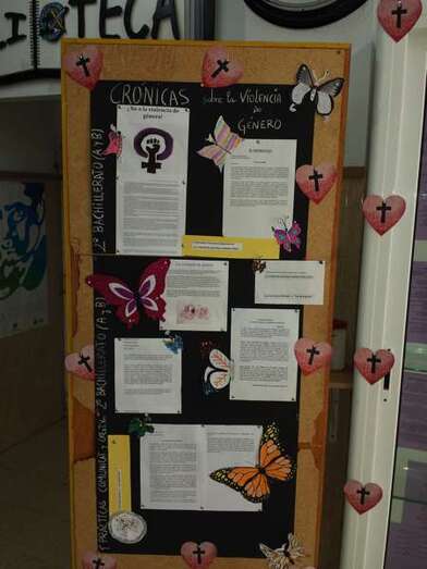 Así, el hall del centro de Las Remudas y otras dependencias se han ido adornando con exposiciones, como una en la que se aludía a cada una de las víctimas de la violencia de género en España y las circunstancias que envuelven a estos fallecimientos (3º de la ESO en la materia de Inglés); otra muestra con crónicas sobre la violencia de género (2º de Bachillerato dentro de la disciplina de Lengua). También se ha podido contemplar otra con canciones alusivas a la violencia machista y a sus víctimas (2º de Bachillerato en la asignatura Música y Sociedad.