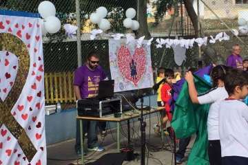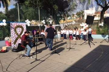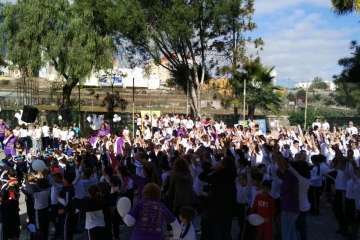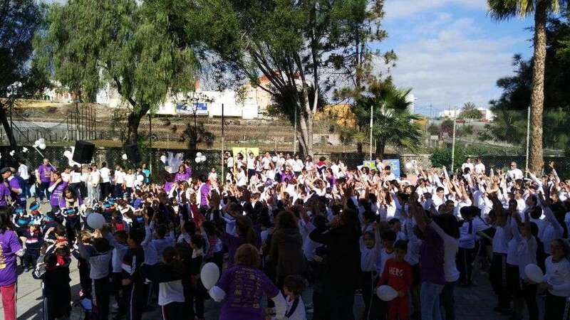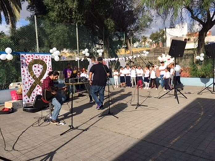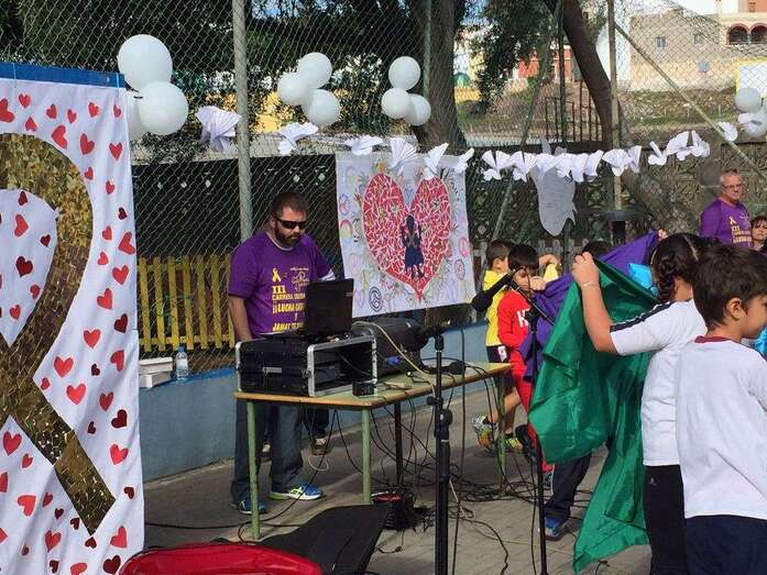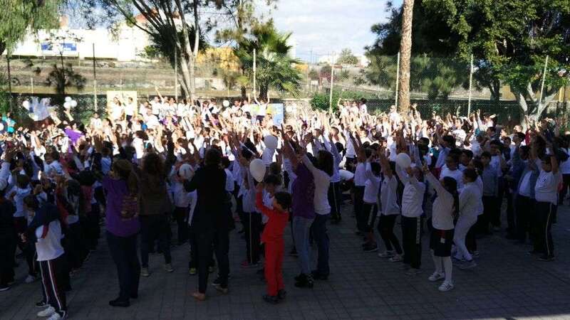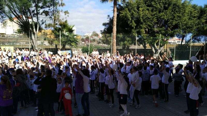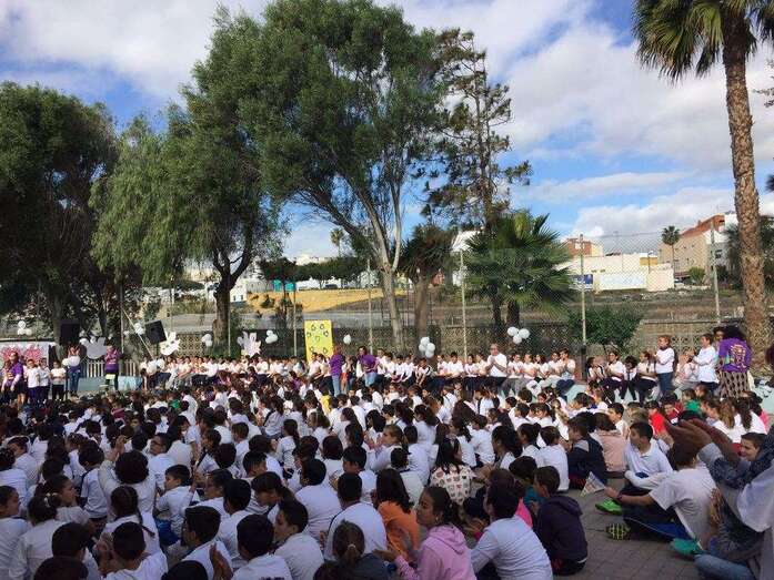Telde.-Con motivo de la celebración del Día Escolar de la Paz y la No Violencia que se celebró este martes, el CEIP Esteban Navarro Sánchez, situado en el barrio teldense de El Calero, quiso aportar su granito de arena en la lucha contra el cáncer. TA ofrece reportaje gráfico.