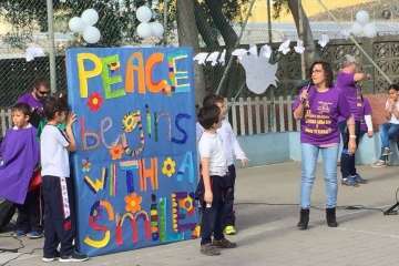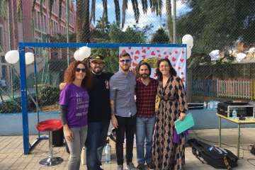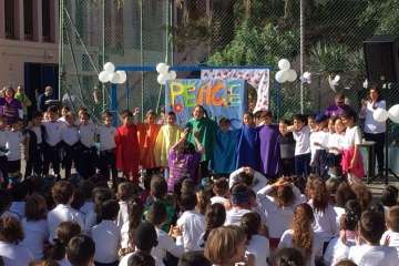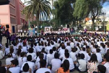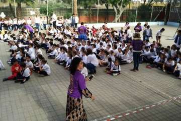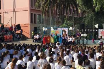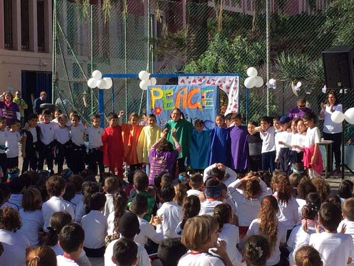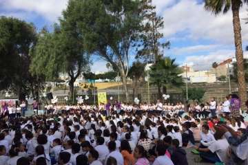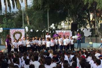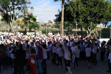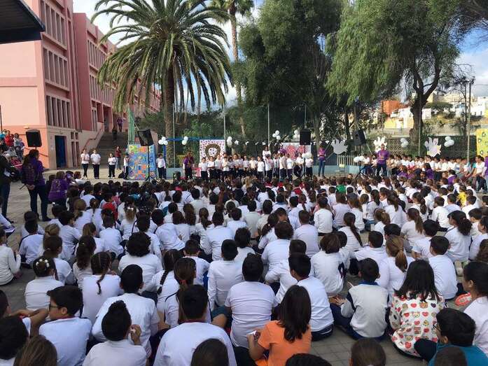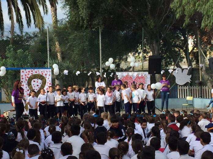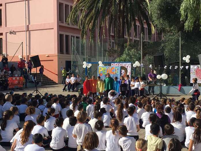 En el acto de ayer lunes, que comenzó a las 10.00 y finalizó una hora depsués se contó con la participación del grupo canario Playacoco. Además, el alumando participó con más de 300 colegiso de toda España en la interpretación de la canción Cantamos por Siria, versionando la composición Cómo te atreves a volver del grupo Morat.