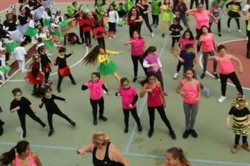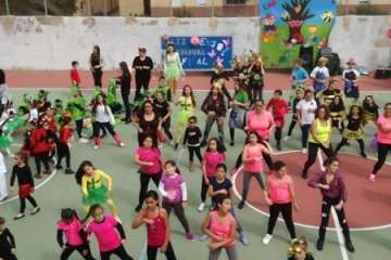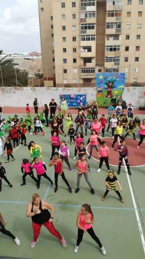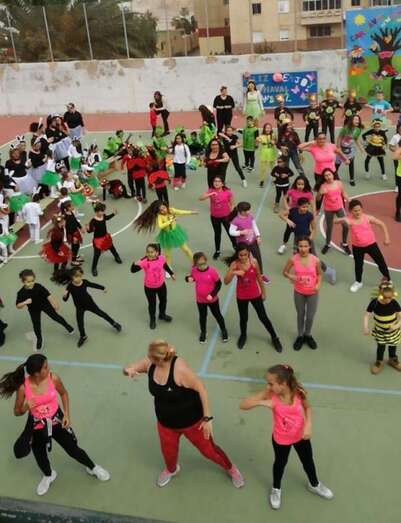 La actuación conjunta de todo el colegio se vio arropada por el grupo de Zumba con su monitora Yessica que “viene haciendo una labor estupenda en el centro”, según destaca la directora Leyda García.