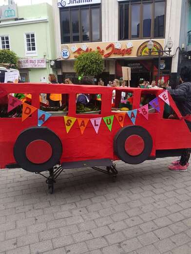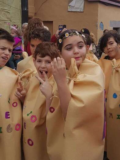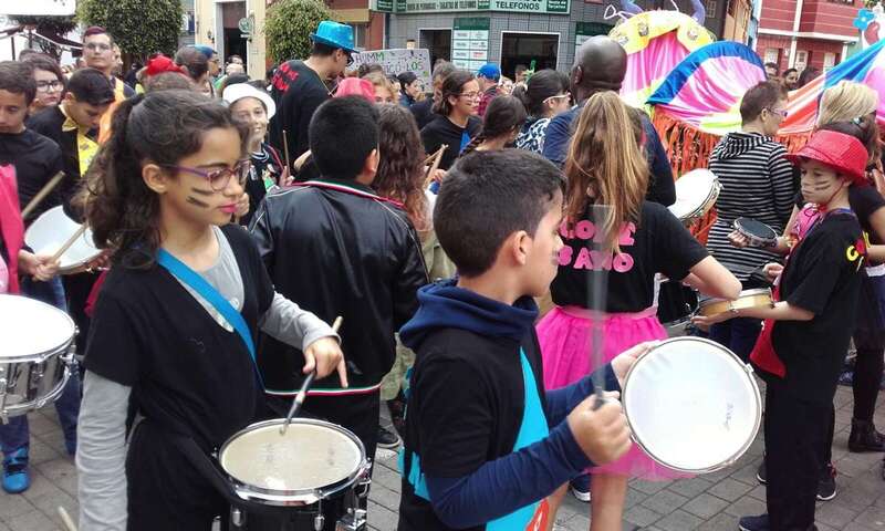 La comunidad educativa del centro protagonizó un colorido y animado pasacalles carnavalero