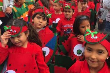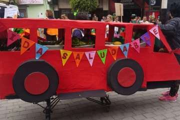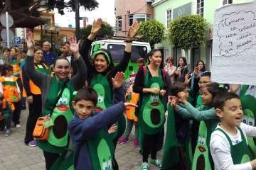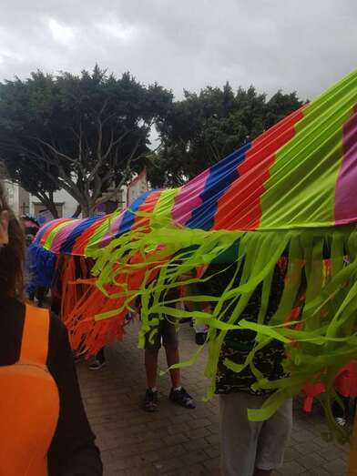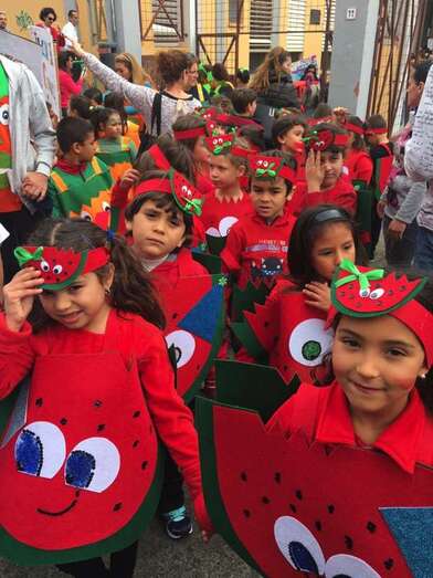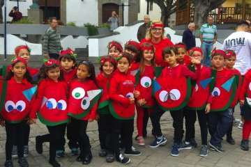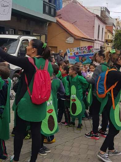 Así las cosas, el alumnado disfrutó de una jornada divertida. Ataviados con los disfraces más diversos, todos bajo la temáticas de los hábitos saludables, y haciendo sonar algún que otro instrumento, los pequeños partieron en comitiva acompañados por sus profesores y familiares, formando una gran serpiente multicolor en la que también tomaron parte papahuevos, un dragón gigante y una guagua cargada de frutas, hortalizas y otros alimentos.