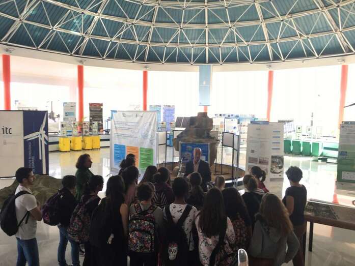 El Instituto Tecnológico de Canarias (ITC), centro de I+D+i adscrito a la Consejería de Economía, Industria, Comercio y Conocimiento del Gobierno de Canarias, se ha sumado a esta iniciativa promovida por el Instituto de la Mujer y para la Igualdad de oportunidades y cofinanciada por el Fondo Social Europeo, en coordinación con los Organismos de Igualdad de las CCAA, incorporando visitas del alumnado a las instalaciones tecnológicas del centro, particularmente en materia de sostenibilidad energética con aprovechamiento de renovables y gestión eficiente del agua y su reutilización con fines productivos. Además de las visitas, los talleres contaron con la participación de dos tecnólogas del ITC, Juana Rosa Betancort Rodríguez, doctora en Química y técnico del Departamento de Agua, y Pilar Navarro Rivero, licenciada en Física y técnica del Departamento de Energías Renovables, que relataron su experiencia como mujeres con trayectoria profesional en áreas tecnológicas y actividad en proyectos científicos y de cooperación en áreas estratégicas.
