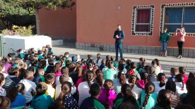 Ferino agradeció este homenaje y compartió unas palabras con el alumnado y el profesorado del centro, alentando a los pequeños a esforzarse por aquello que quieran conseguir.