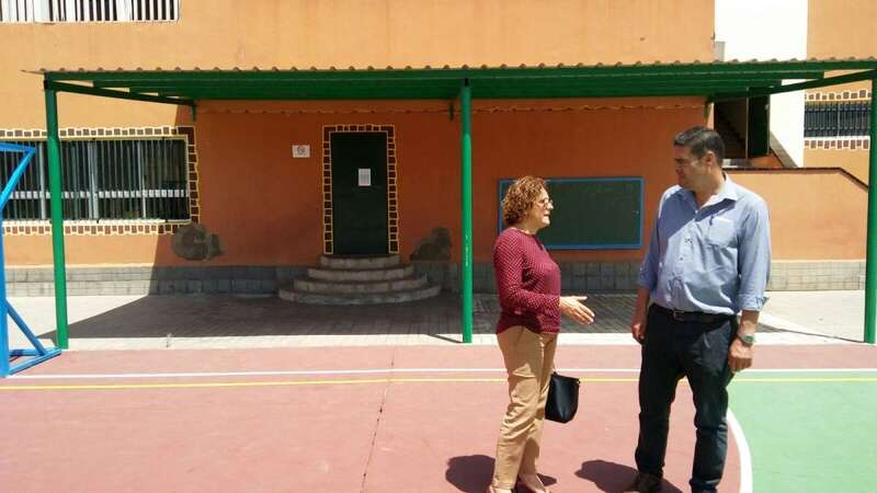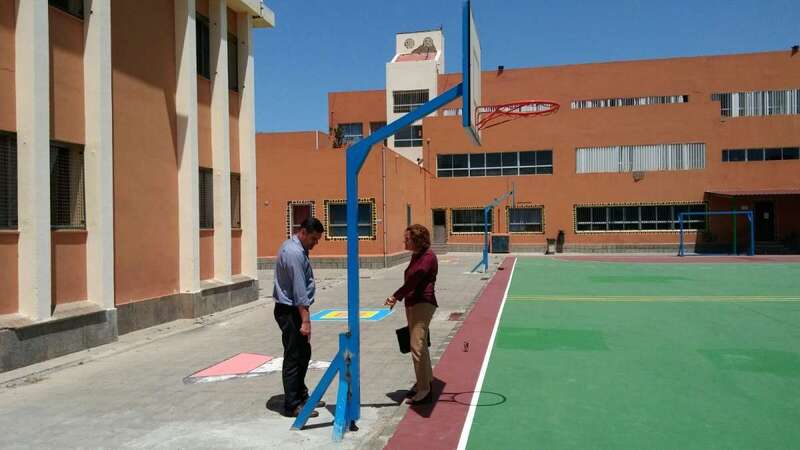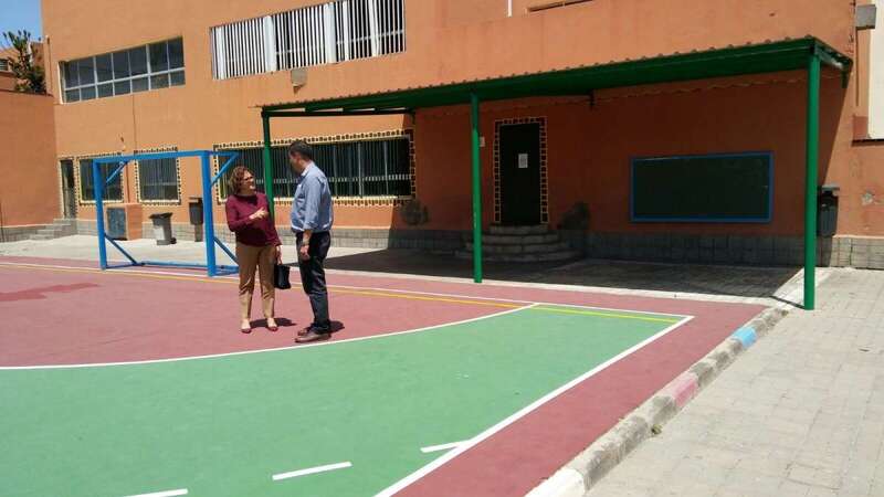 Los ediles Marta Hernández y Diego Ojeda comprobaron el resultado de los trabajos durante una visita al centro escolar situado en Las Remudas, un colegio muy comprometido con la actividad deportiva y cuyas instalaciones son utilizadas por diversos clubes en horario de tarde.
