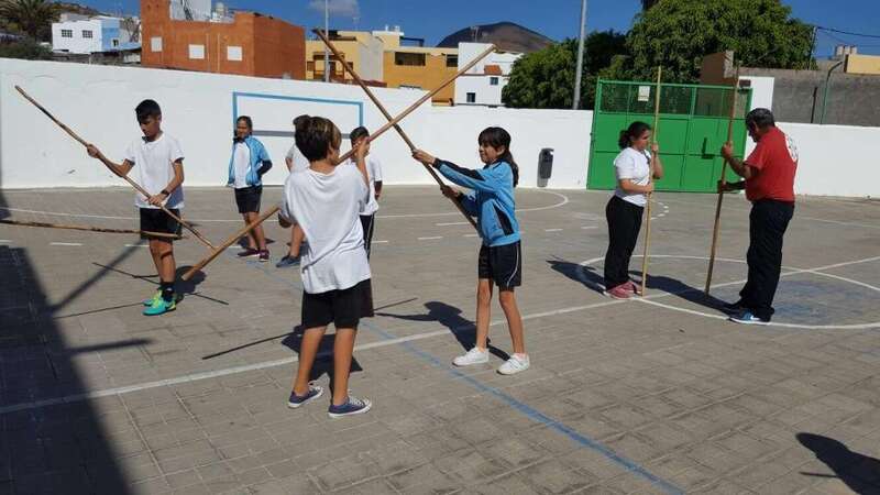 Telde.- El alumnado del CEIP Maestro Félix Santana, del Valle de los Nueve, disfrutó días atrás de dos talleres orientados a dar a conocer el juego del garrote y la lucha canaria.