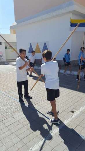 También mostraron algunas técnicas del juego y finalmente algunos alumnos de 2º y 3º ciclo pudieron practicarlo con ellos. “Fue una estupenda oportunidad para que el alumnado pudiera conocer esta parte de nuestra cultura canaria y el centro agradeció el gesto a la escuela, cuyos miembros además, invitaron a todos los alumnos del colegio a practicar esta tradición en Lomo Cementerio, los martes y jueves, en la sede de la Escuela del Juego del Garrote, junto al campo de lucha”, explican desde el centro.