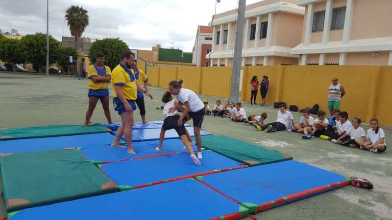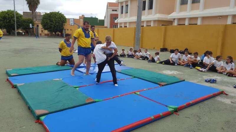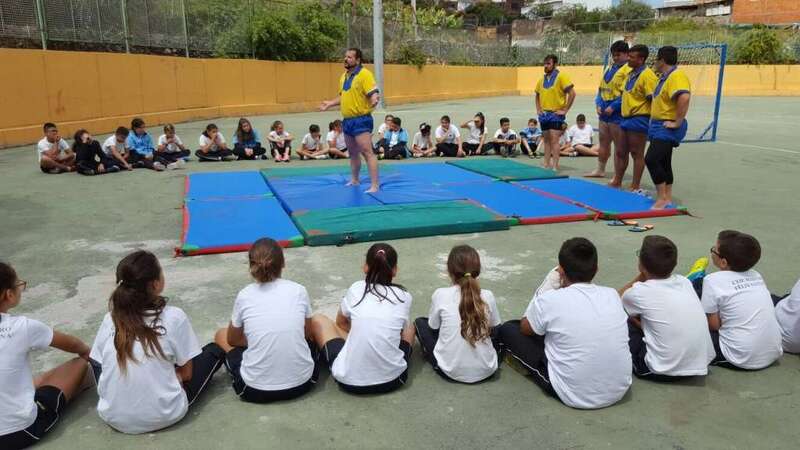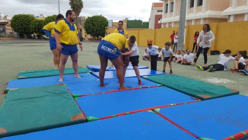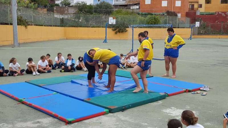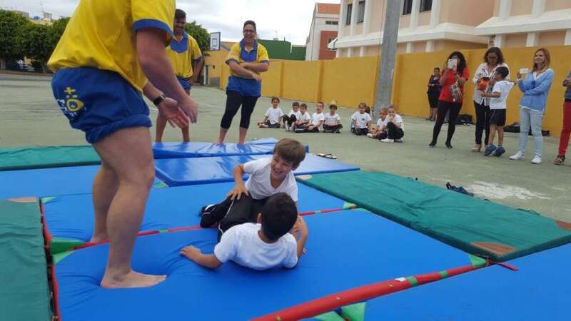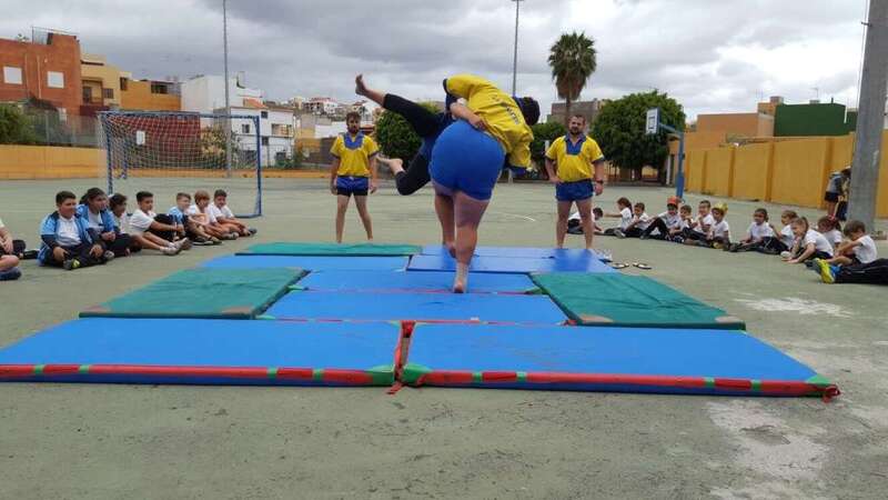 Y, en segundo lugar, el Club de Lucha de Guanarteme visitó también el centro para impartir un taller de lucha canaria. Los alumnos pudieron conocer la normativa de este deporte, así como algunas de las mañas (movimientos para derribar al contrario) que se utilizan.