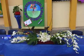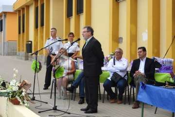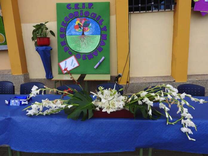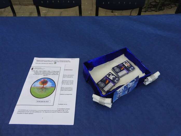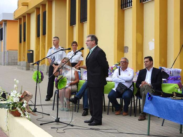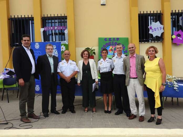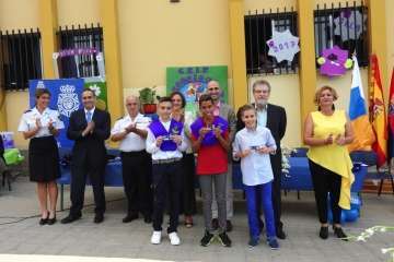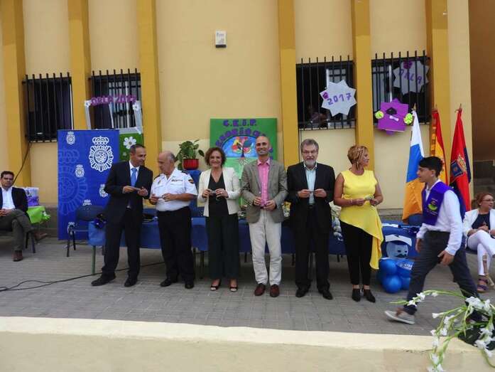 La entrega tuvo lugar en la tarde del viernes, con presencia de los concejales Marta Hernández y Diego Ojeda, responsables de Educación y Juventud, respectivamente, el comisario Jesús García Aller, el director territorial de Educación Juan José Gil Méndez y el inspector de zona Francisco Castellano, Antonio Hernández Lobo por parte de la Alta Inspección Educativa de la Delegación del Gobierno,  miembros del consejos escolar y el AMPA Los Huesitos, y el profesorado del centro.