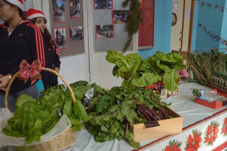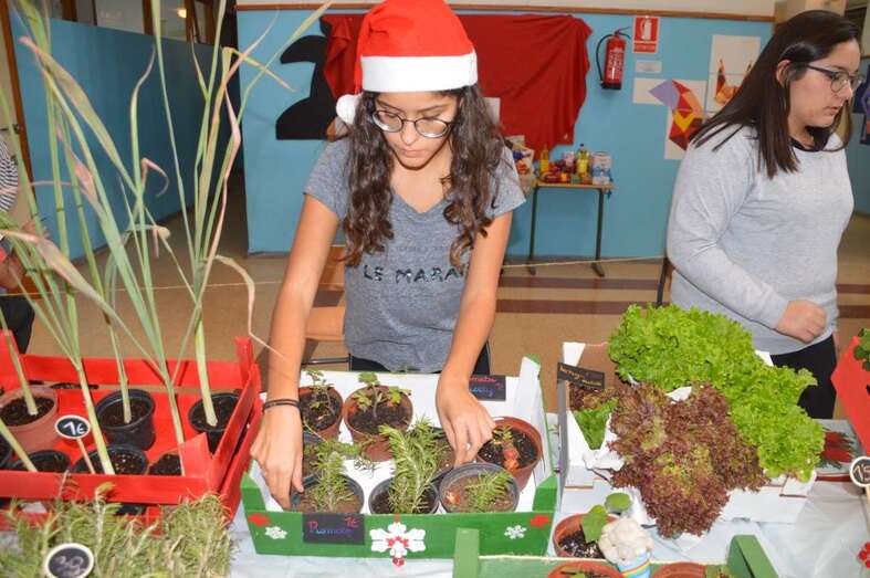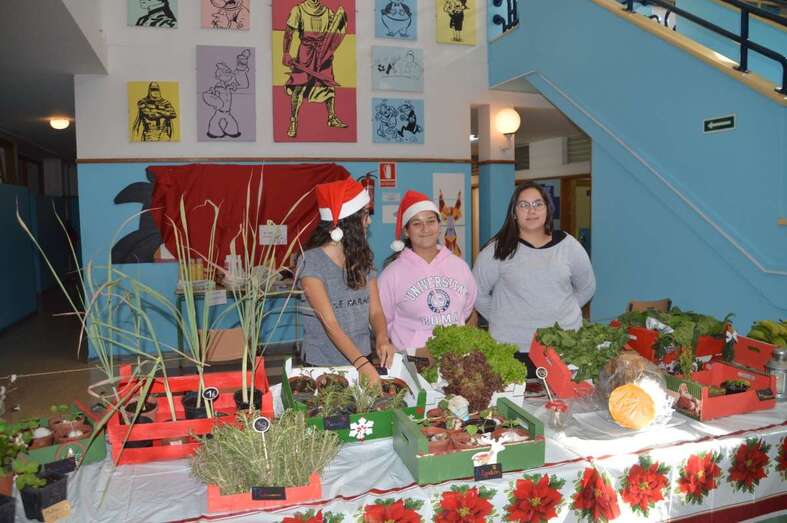 Telde.- Acelgas, lechugas, caña de limón y espinacas son algunos de los productos agrícolas que los alumnos del IES José Frugoni Pérez comerciaban este miércoles en el mercadillo navideño instalado en el hall del centro, todos ellos recolectados en el huerto ecológico que gestionan desde hace cuatro años.