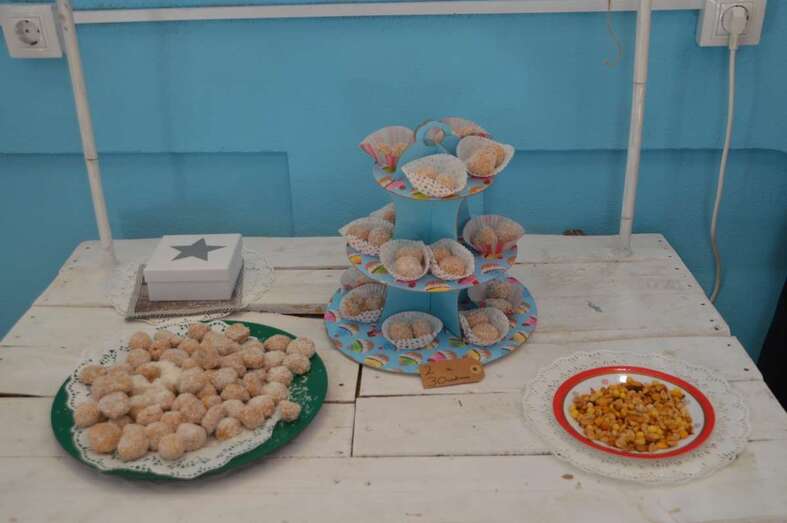Las madres colaboran también aportando frutas y compotas de mermeladas variadas al surtido de productos a la venta en el mercadillo, que este miércoles estuvo abierto mañana y tarde y mañana jueves solo en la jornada matutina.