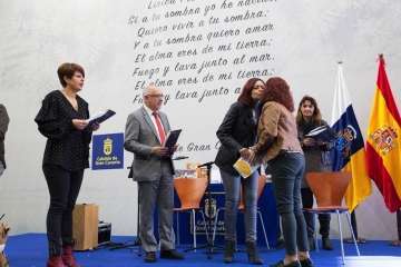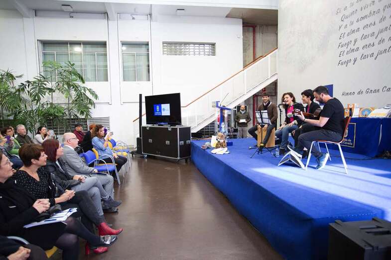 Así, los docentes recibieron un disco con las canciones en imágenes animadas del Cancionero de la Cultura Tradicional de Gran Canaria, temas que hacen referencia a la cultura del agua, la actividad del pastoreo, el juego del garrote canario y la gastronomía tradicional junto a antiguas canciones basadas en los artesanos.