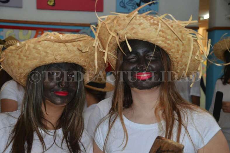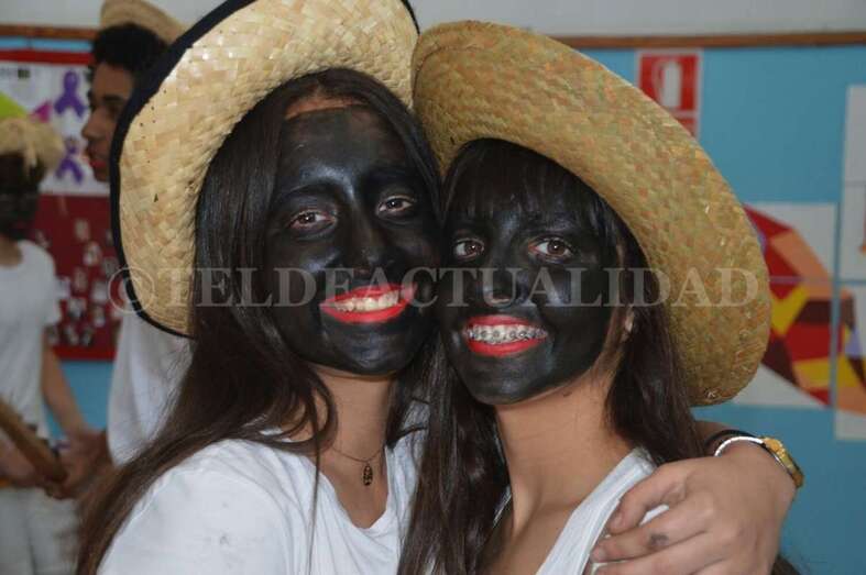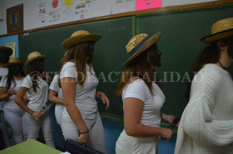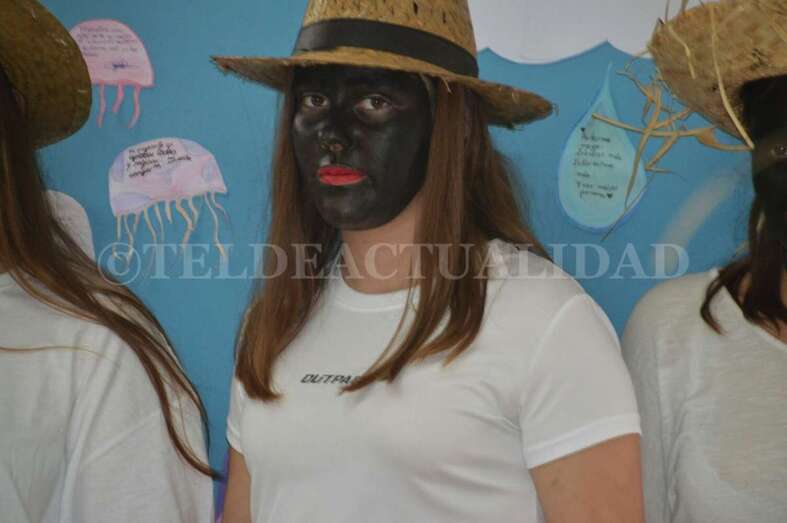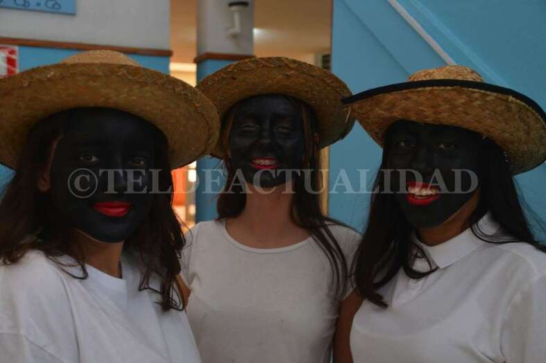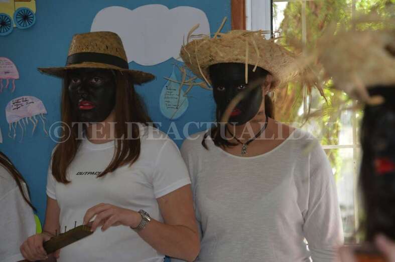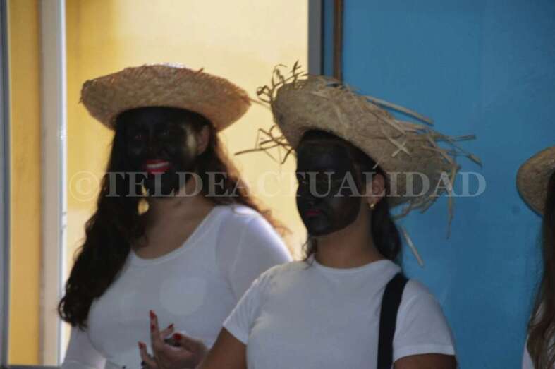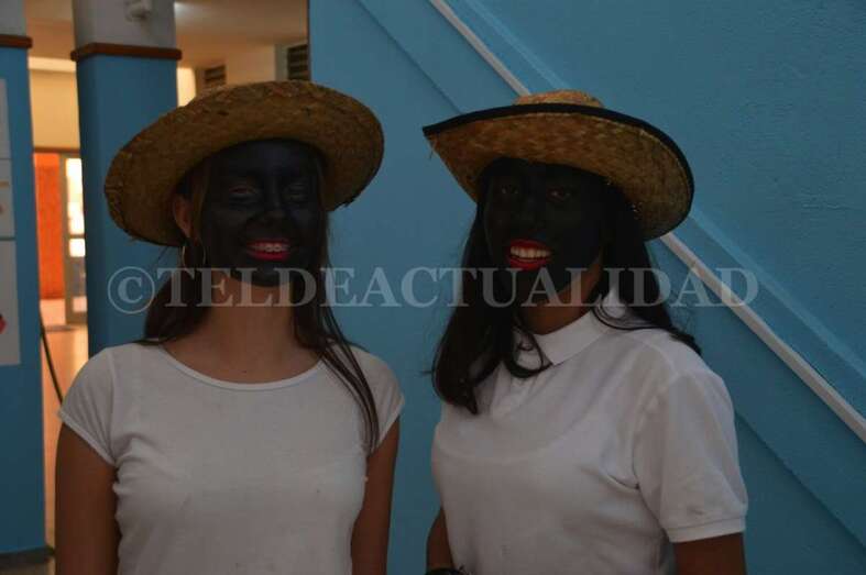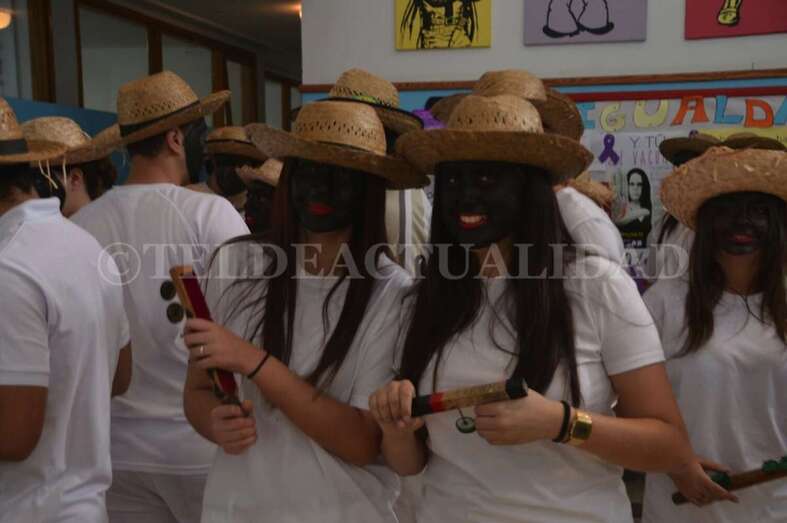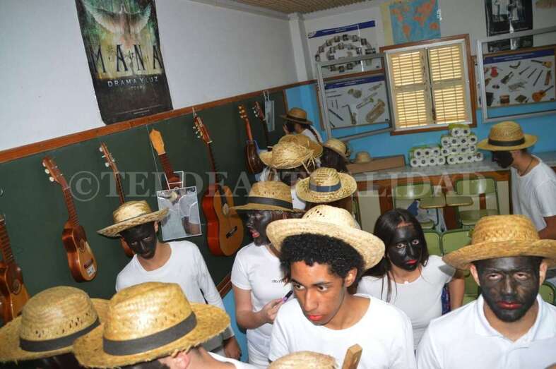 Ataviados con ropas blancas al más puro estilo caribeño y con el rostro teñido de betún y unos labios rojos y carnosos, un grupo de alumnos de La Rocha, dirigidos por el vicedirector y profesor Antonio Betancor van representando clase por clase esta tradición de orígenes africanos, que luego cruzó el Atlántico hasta Cuba y se asentó en Canarias a finales del siglo XIX de la mano de emigrantes retornados que trajeron consigo estos bailes propios de las sociedades secretas de esclavos negros que luchaban contra su situación.