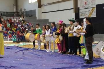 Tras las murgas, le tocó el turno a la batucada de alumnos que actuó bajo la coordinación del profesor especialista de Música, Fran Sanchez.