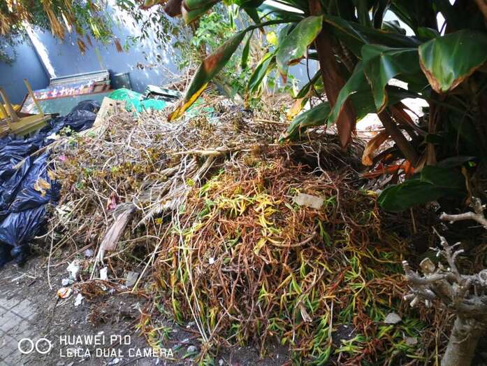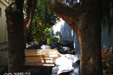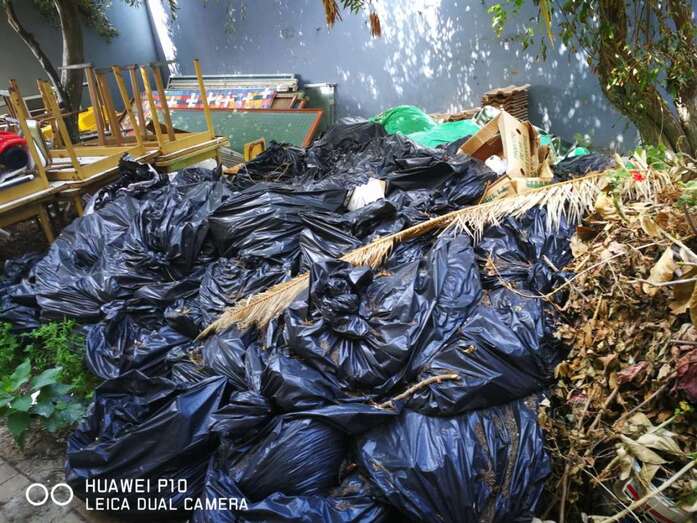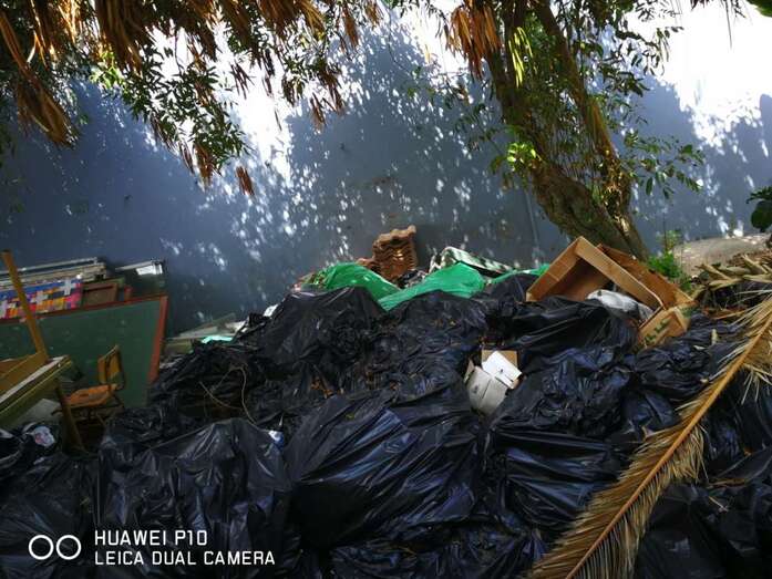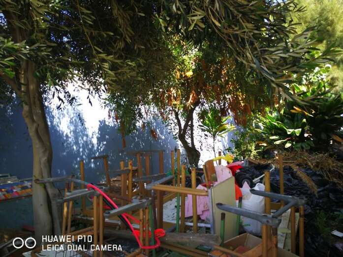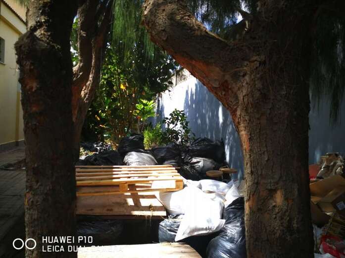 Muy contentos quedaron con esta actuación hasta que se percataron que toda la basura y los desperdicios que se retiraron (ramas, mesas, sillas y muebles viejos, palomas muertas, etc.) había quedado amontonada junto a una de las entradas al centro por el que acceden los alumnos del servicio de recogida temprana y que también sirve como salida de emergencia desde el comedor. Lo que ha provocado, sostienen desde el AMPA, que los menores sufran picaduras de insectos.