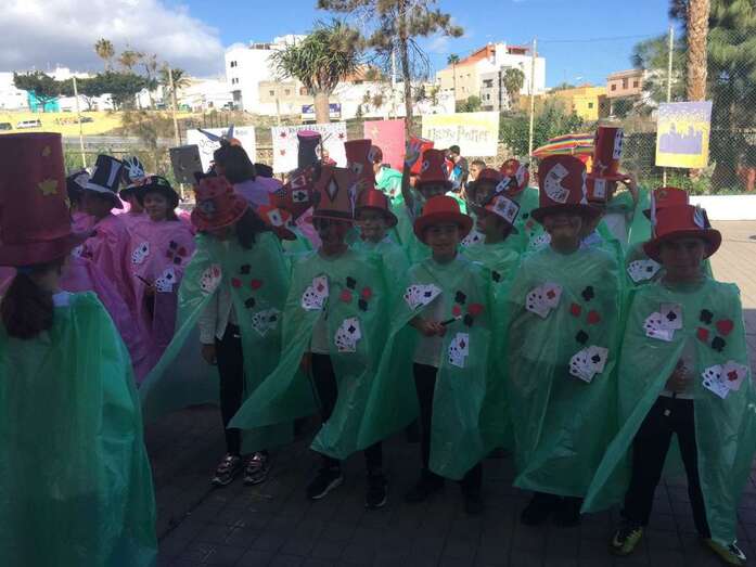 Telde.- El Colegio Público Esteban Navarro, de El Calero, celebró días atrás “a golpe de pócimas” el Carnaval de la Magia. A través de la temática trabajada a lo largo del curso, el alumnado participó en un espectáculo lleno de magia y fantasía.
