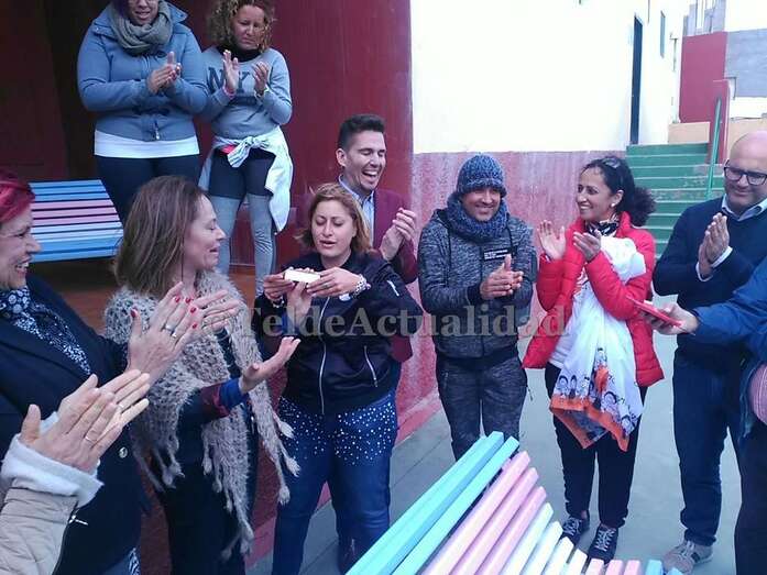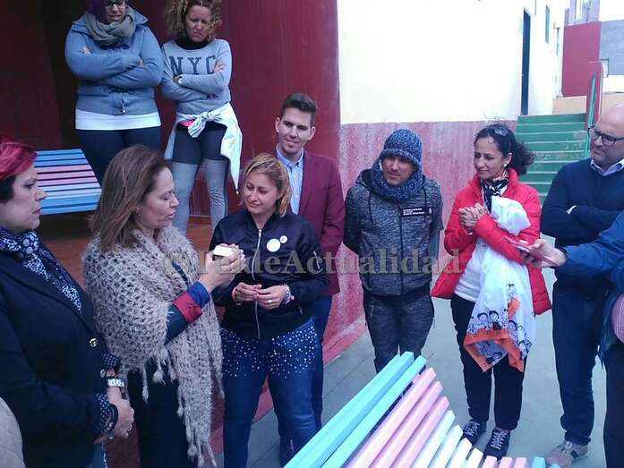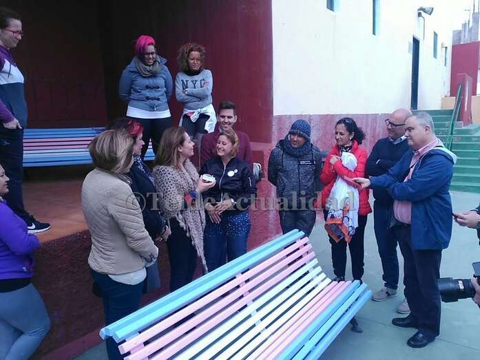 Telde.- Tres bancos del CEIP Amelia Vega de Monzón visibilizan desde este lunes la lucha del colectivo de transexuales para que se reconozcan su identidad. Fueron pintados con los colores de la bandera trans en un acto de la comunidad educativa y de Chrysallis Canarias, que agrupa a las familiares de menores transexuales.