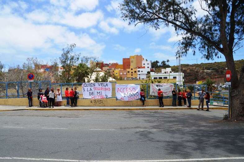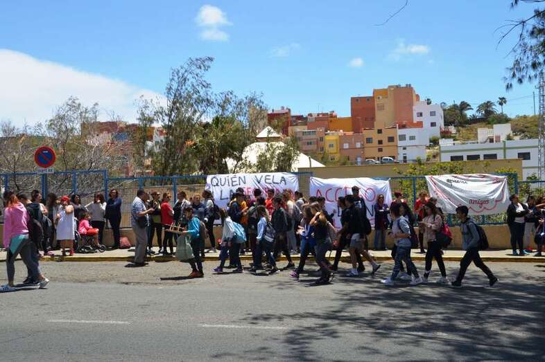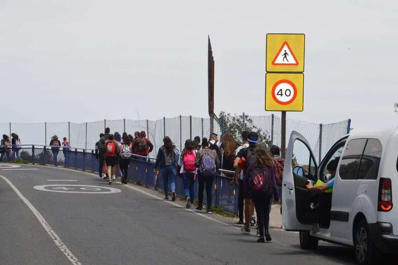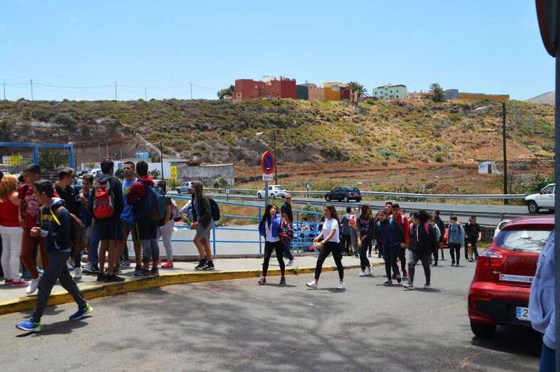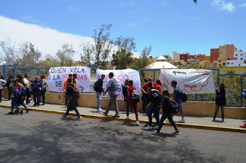 Los padres quisieron esta jornada que se visibilizará la inseguridad que se da de lunes a viernes, en los días lectivos, a filo de las 14.00 horas, cuando la masa de alumnos del centro abandona las aulas y se dirigen a sus casas por los márgenes de la transitada carretera general (GC-100).