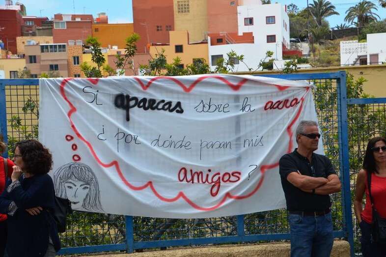 Héctor León, miembro del equipo directivo de la Asociación de Madres y Padres de Alumnos, llevó la voz cantante ante los medios de comunicación que hasta allí se desplazaron para recoger las demandas de la comunidad educativa. León fue claro en su exposición y en la denuncia dirigida al Ayuntamiento y al Cabildo.